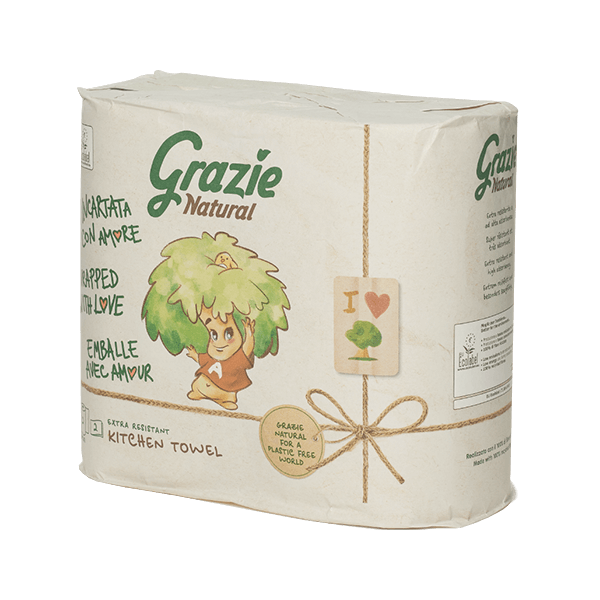 Grazie Natural offre un’ampia gamma di prodotti in carta 100% ecologica, realizzati attraverso il riciclo delle fibre di cellulosa contenute nei cartoni per bevande.