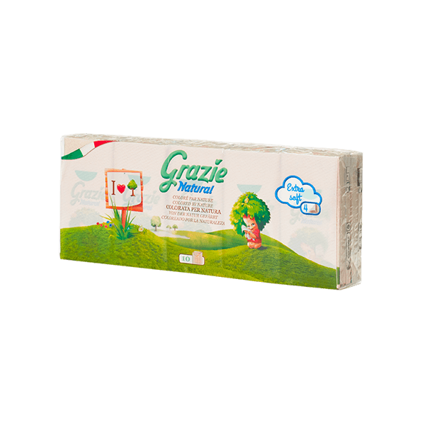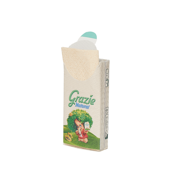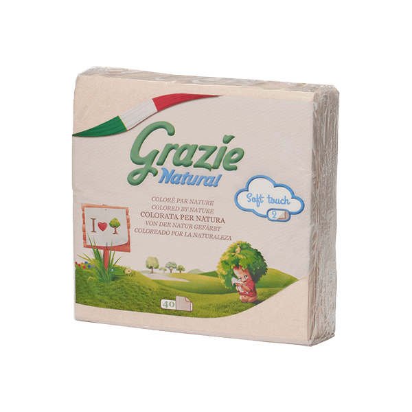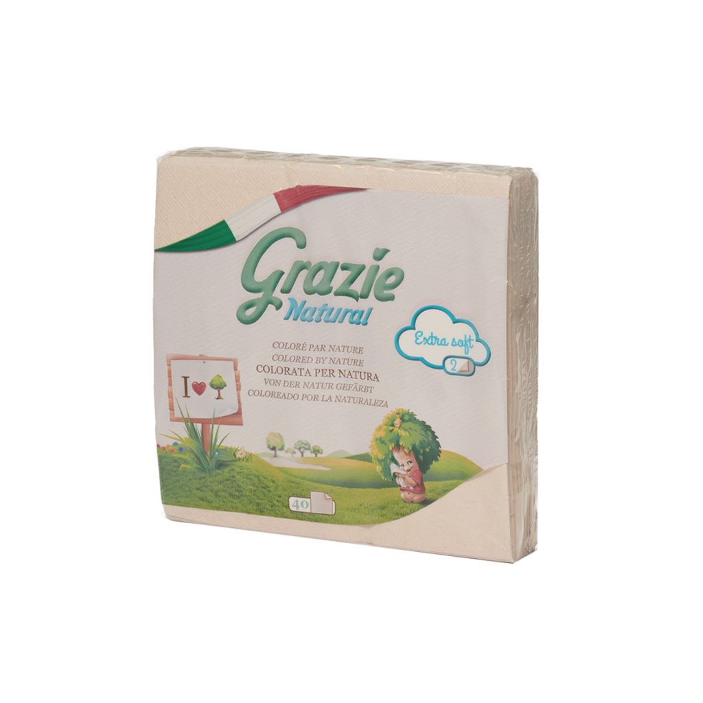 La linea di tovaglioli ecologici Grazie Natural scende in tavola per i tuoi bisogni e quelli del pianeta. Carta effetto tessuto, soffice, dermatologicamente testata e con certificazione Ecolabel.