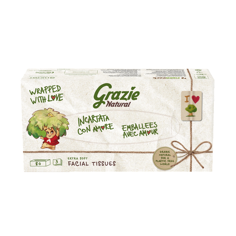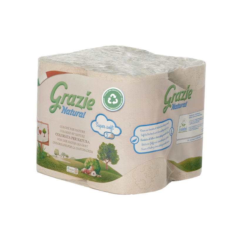 Le veline ecologiche Grazie Natural, extra resistenti, racchiuse in un innovativo pack in cartoncino, con certificazione Ecolabel, sono pronte a essere sfilate per soddisfare i tuoi bisogni e quelli del pianeta.