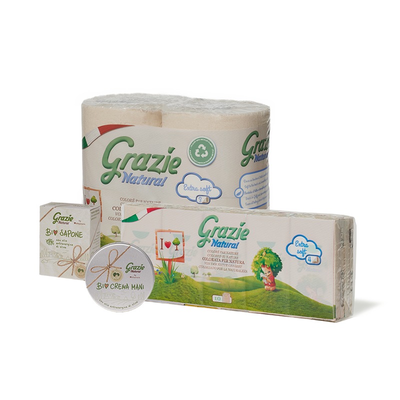 Scegliendo i prodotti ecologici Grazie Natural, realizzati attraverso il riciclo di cartoni per bevande, contribuisci a garantire un presente e un futuro migliore al pianeta e alle generazioni di oggi e domani.